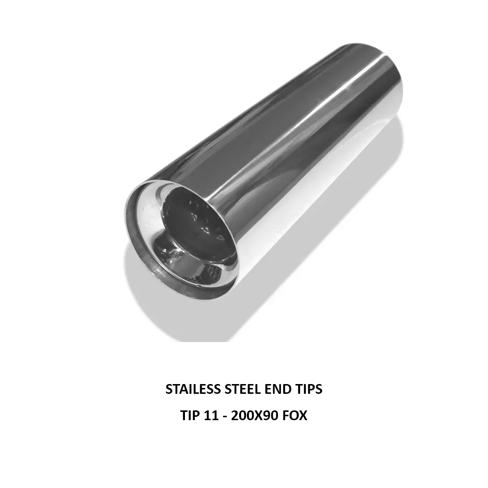 The 200X90 FOX Exhaust End Tip designed to offer sleek matte stainless-steel finish especially to match compact sports cars. With enhanced exhaust flow its boost engine performance and provides a deeper aggressive exhaust sound eliminating the chrome flash.