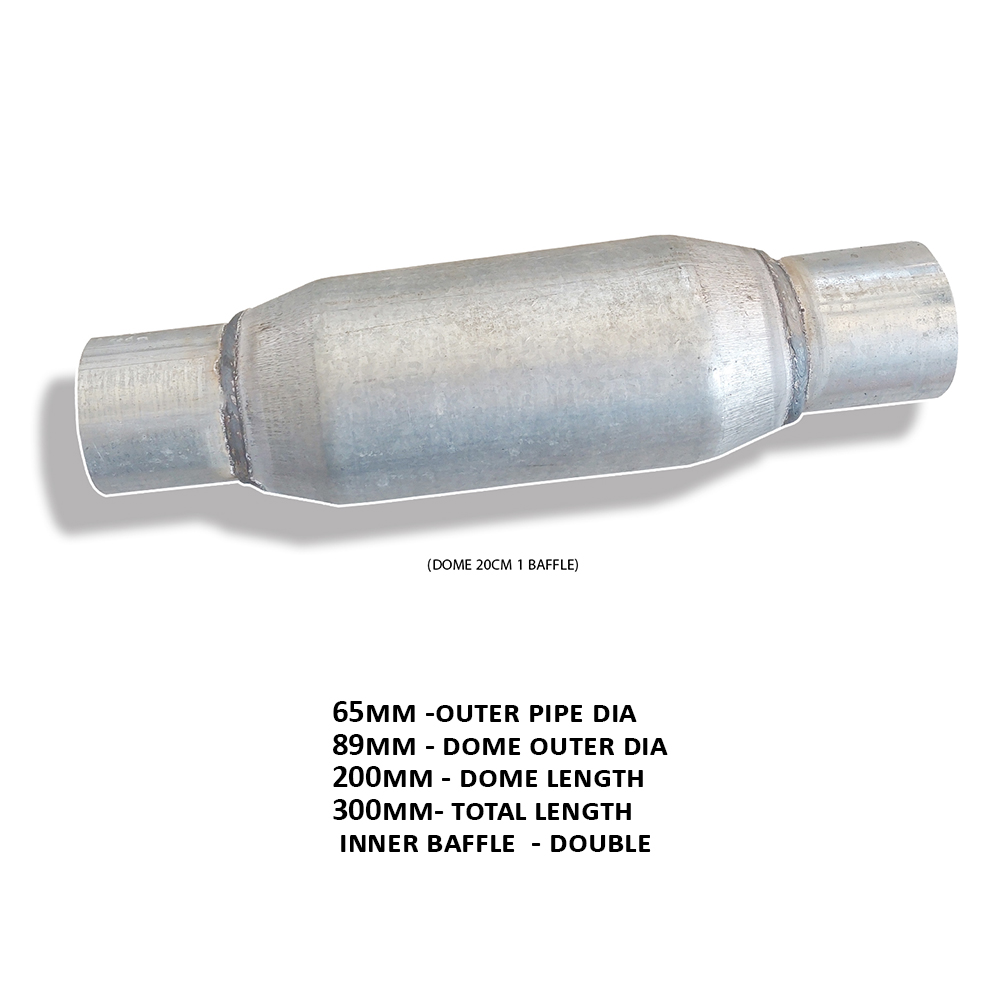 65mm -outer pipe dia 89mm – dome outer dia 200mm – dome length 300mm- total length inner baffle – double