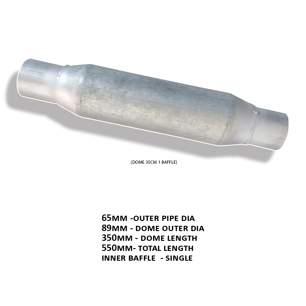 65mm -outer pipe dia 89mm – dome outer dia 350mm – dome length 550mm- total length inner baffle – single